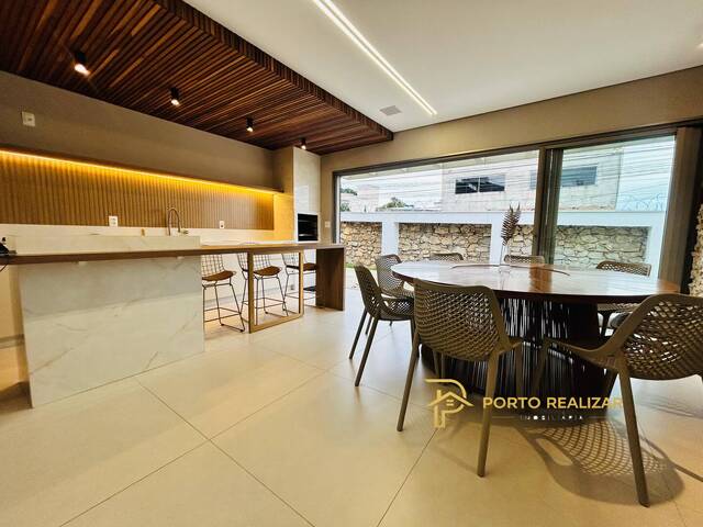 A casa é totalmente planejada, com ambientes que unem funcionalidade e requinte. A cozinha se destaca pelo design moderno e móveis planejados, integrada a uma sala de jantar charmosa, que comporta até 12 lugares, com uma linda cristaleira, ideal para momentos especiais e recepções memoráveis.